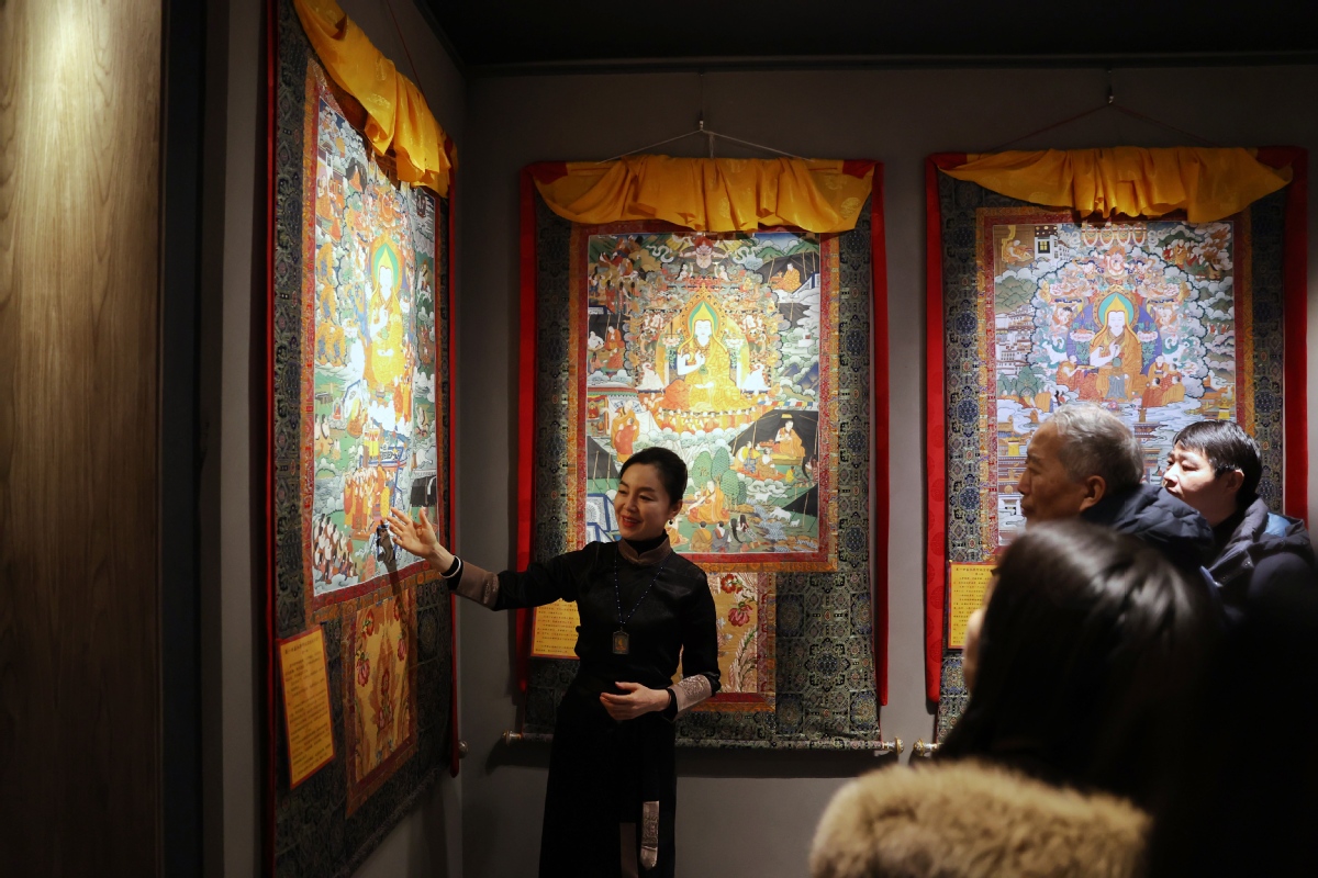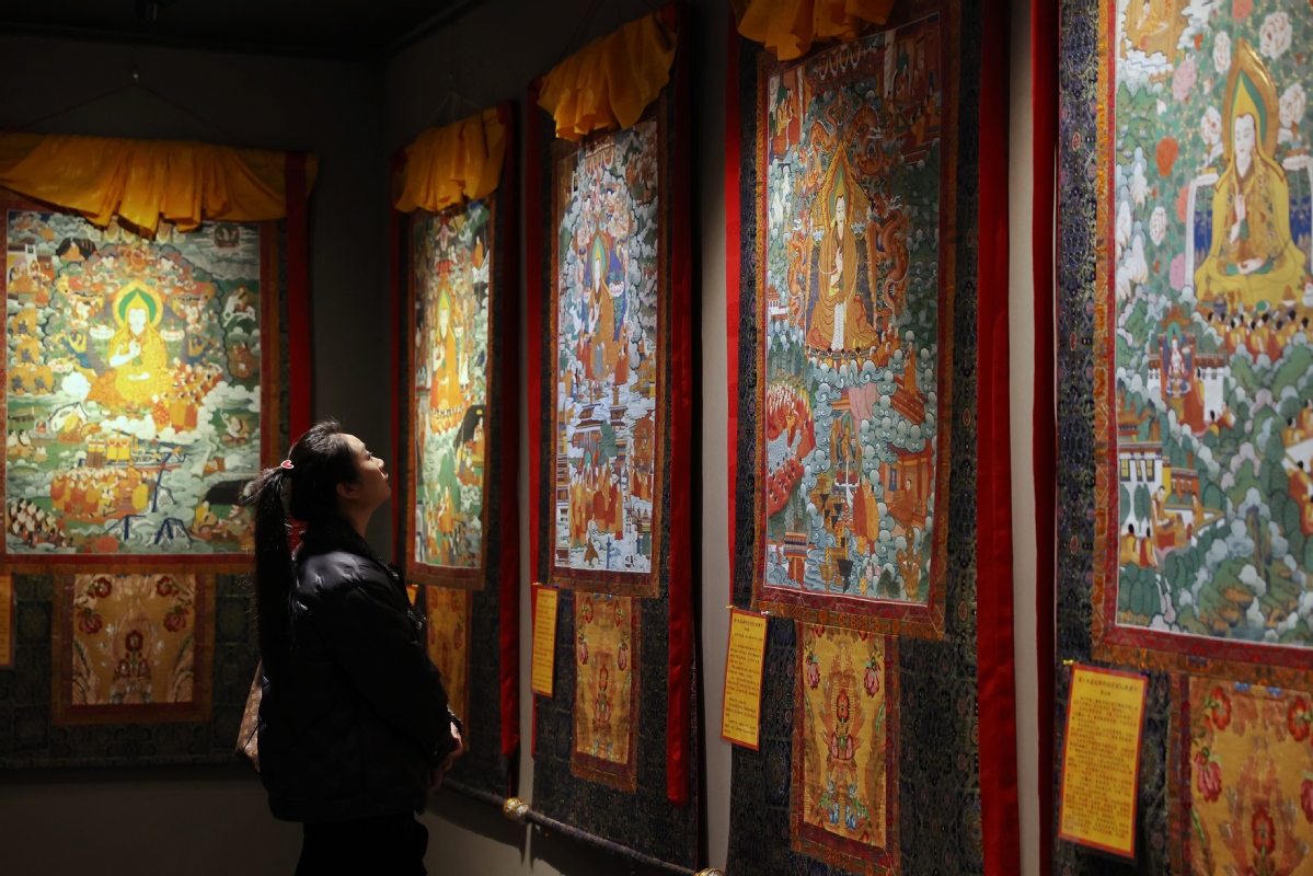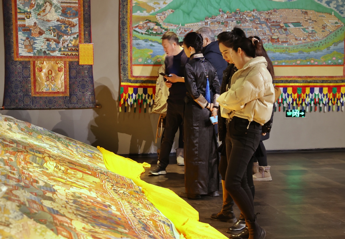 12月26日,北京,觀眾在皇城藝術(shù)館參觀《甘肅甘南非遺文化藝術(shù)展》。中國日報(bào)記者 姜東 攝