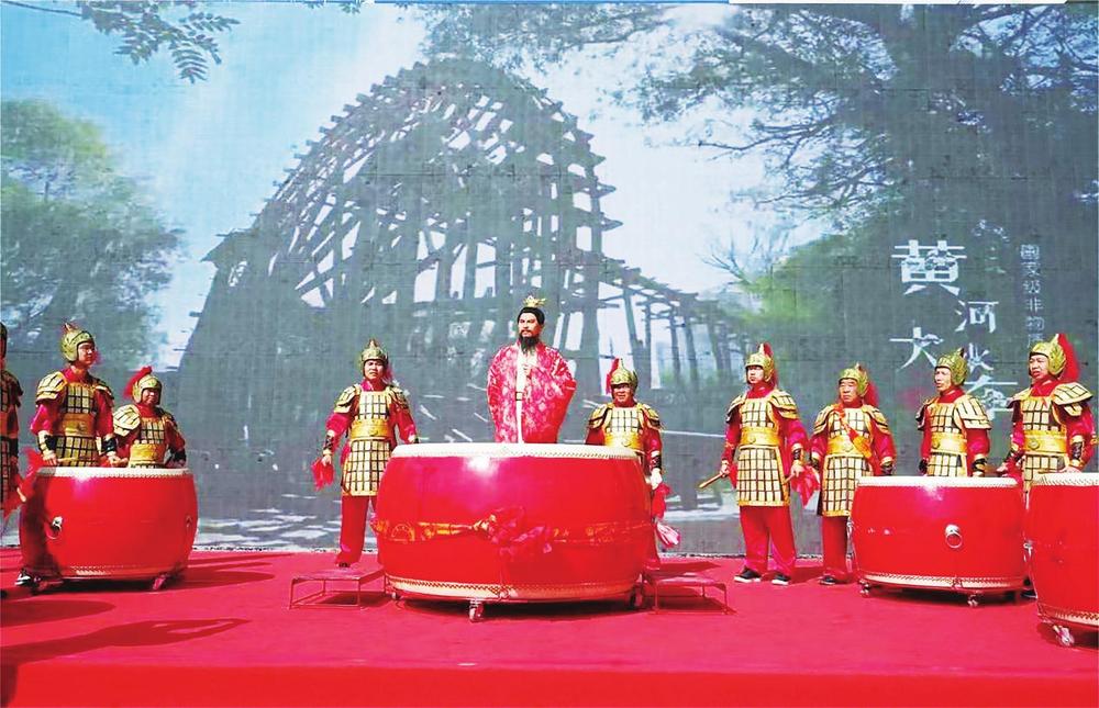 開場演出《黃河戰(zhàn)鼓》氣勢磅礴、有聲有色(省文旅廳供圖)