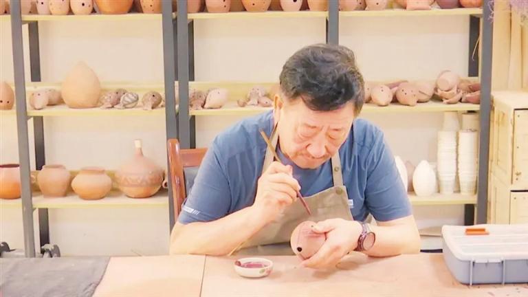 傳承人關振國在完成玉門陶塤的彩繪環(huán)節(jié)。