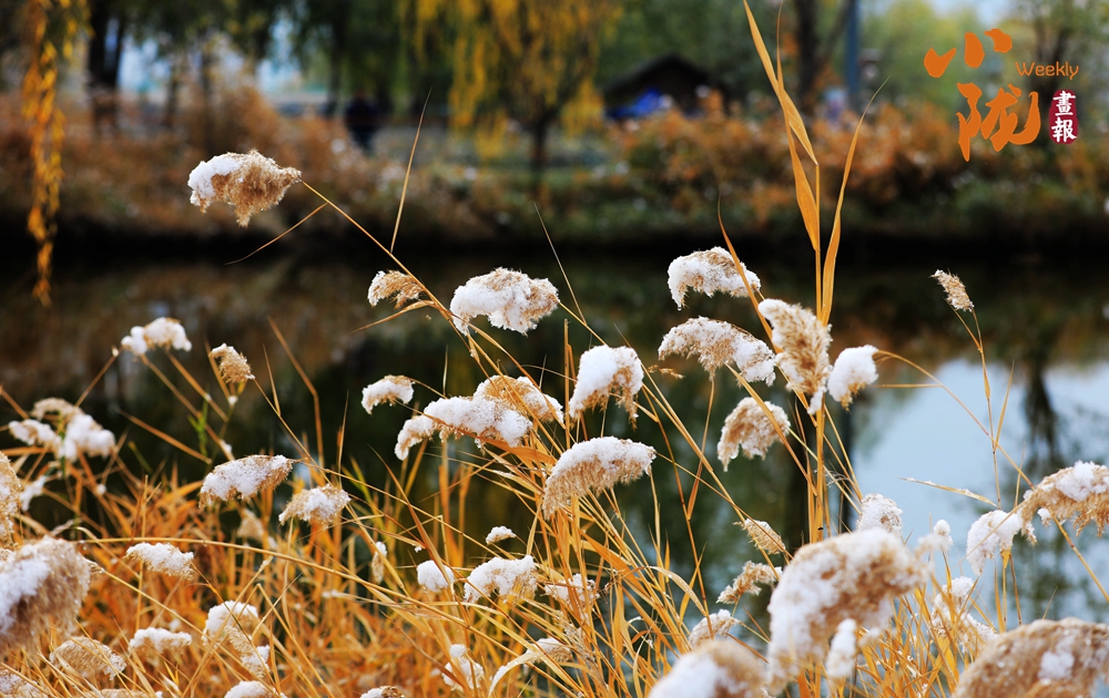 宛如江南水鄉(xiāng)的太極島在雪的映襯下,魚塘四周暗黃色的蘆葦枯敗中藏神韻,它們披著白雪,頂著寒風(fēng),為大地增添了一抹溫暖的色彩。