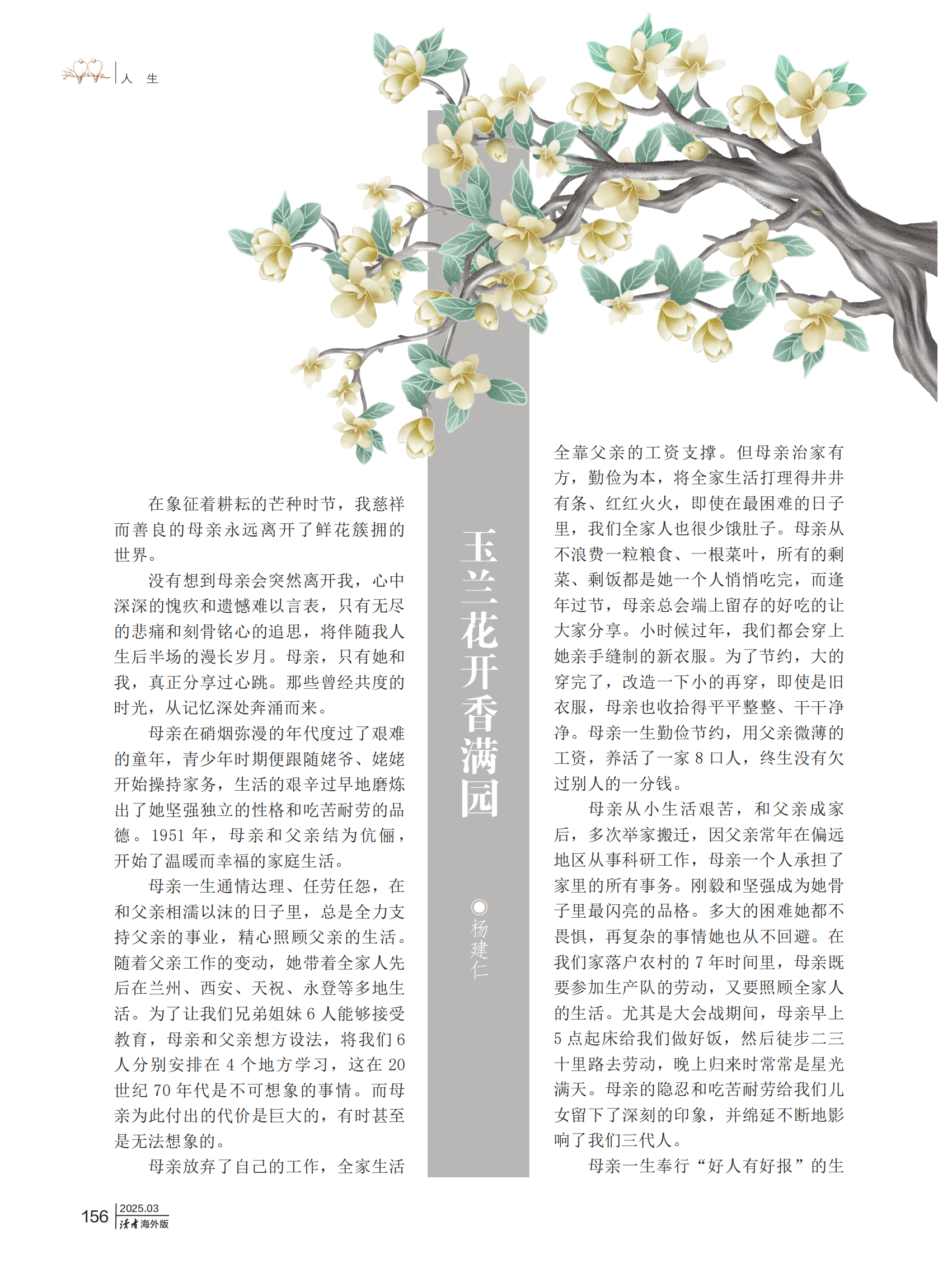 《讀者》(海外版)期刊發(fā)表?xiàng)罱ㄈ饰恼隆队裉m花開(kāi)香滿園》