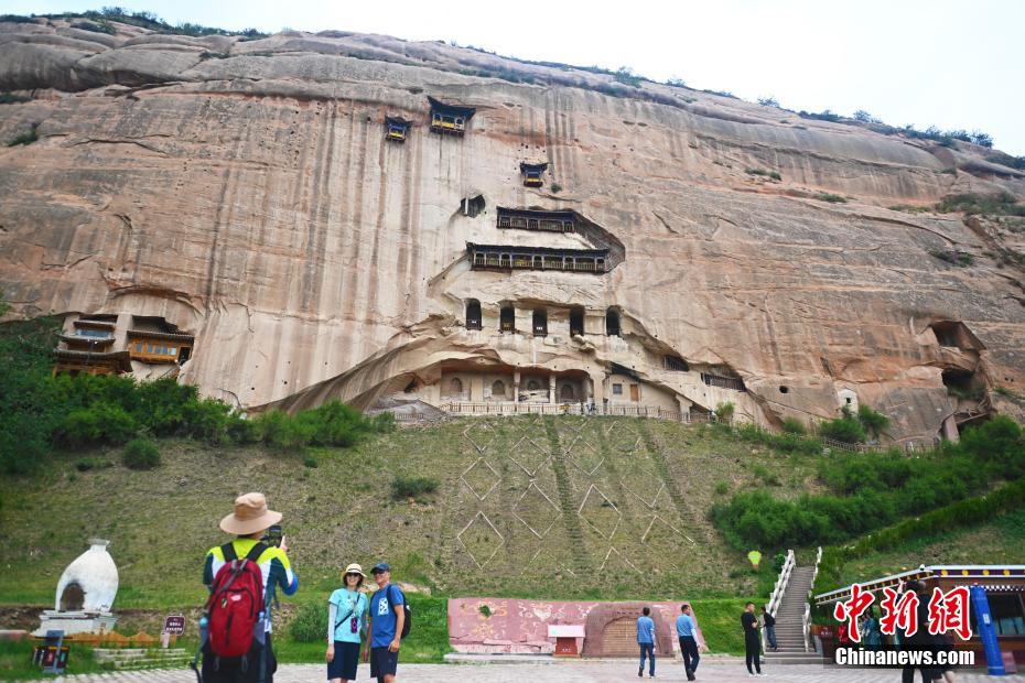 6月23日,位于甘肅省張掖市肅南裕固族自治縣祁連山下的馬蹄寺石窟前,游人拍照。馬蹄寺石窟因傳說中的天馬在此飲水落有馬蹄印而得名,馬蹄寺石窟群開鑿于十六國北涼時期,距今1600多年的歷史,與敦煌莫高窟、瓜州榆林窟并稱為河西佛教圣地三大藝術(shù)寶窟,是中國唯一一處棧道修筑于崖體之內(nèi)的石窟。馬蹄寺石窟群由千佛洞、馬蹄南寺、馬蹄北寺等多個單元組成,窟內(nèi)保存著從北涼到明代的珍貴塑像500余身,壁畫1200多平方米。中新社記者 李亞龍 攝