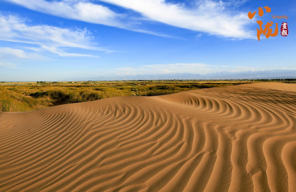 站在綠洲與大漠的結(jié)合處,觀賞四方風(fēng)景,眼前奇異的景致讓人驚嘆萬分:一邊是莽莽蒼蒼、雄渾博大、無邊無際的大漠海洋,一邊是郁郁蔥蔥、娟秀嫵媚的綠洲碧野。這是大自然杰出的造化,這黃色與綠色之間沒有任何過渡,兩色卻形成鮮明的對(duì)比,宛如畫家手下的色盤,黃綠分明、對(duì)比強(qiáng)烈而又和諧統(tǒng)一,令人叫絕?!?/p>
