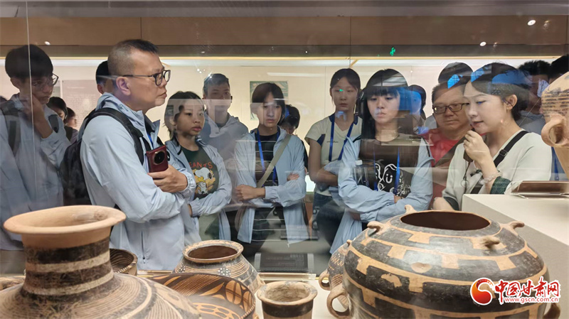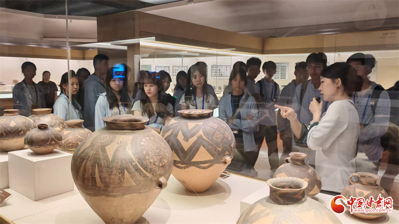 7月24日上午,“同心筑夢”2025年澳門青少年甘肅行來到甘肅省博物館,來自澳門培正中學(xué)等7所中學(xué)的30名師生依次參觀了“甘肅古生物化石”“甘肅彩陶”“絲綢之路”三大常設(shè)展覽,在“穿越時空”的沉浸式體驗中感受黃河文化的厚重與絲路精神的多彩,完成了一次跨越億萬年、縱覽文明史的深度研學(xué)之旅。