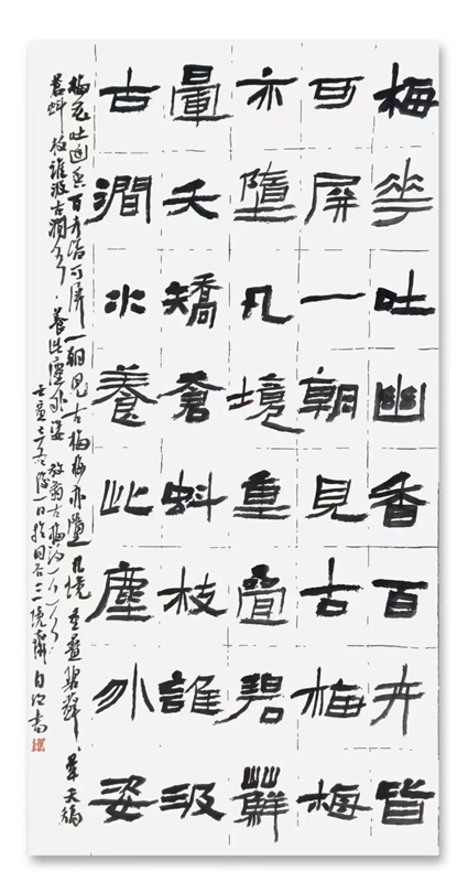 近年來,王自強的創(chuàng)作逐漸從具象走向意象。他嘗試將工筆畫的細膩與隸書的厚重結合,在《荷塘清韻》等作品中,荷葉的墨色層次與書法的線條韻律相互映襯,形成“書畫同源”的藝術境界,這種對書法藝術的探索精神不僅得到業(yè)界認可,而且得到了社會的廣泛認同。