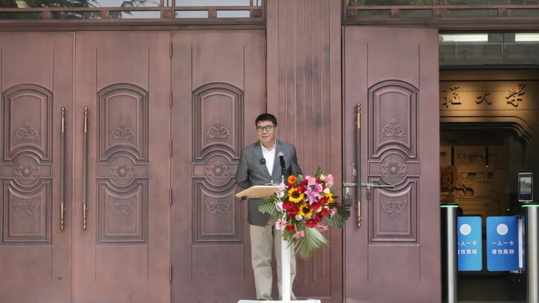 開幕式最后,徐兆壽致答謝詞。他說,做這次展覽的初衷,是因為在這個數(shù)字、AI和音視頻的傳播時代,書寫可以體悟中國文化的心法。他自三十六歲起開始與孔子、老子、鳩摩羅什等圣賢結(jié)緣,五十歲以后又遇見了伏羲、大禹,正是如此多的先賢讓他有了弘道的愿望。同時特別感謝樓宇烈、莫言、賈平凹、連輯、李敬澤等眾多文化名家的支持,共同呼吁大學(xué)生抄寫經(jīng)典,傳承中華文脈。最后,他呼吁更多的人拿起毛筆或鋼筆,重新書寫,傳承經(jīng)典,弘揚(yáng)傳統(tǒng)文化。