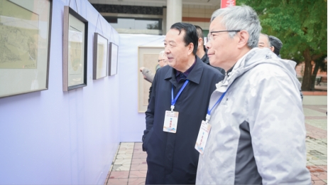 學校領導陪同畫家們觀展