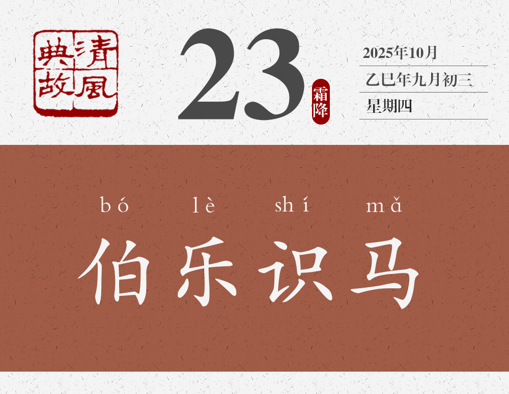 春秋秦穆公時,有一個著名的相馬師叫孫陽。因為神話傳說中,掌管天馬的神仙叫伯樂,人們?yōu)榱吮硎緦O陽的敬佩,就稱他為伯樂。屈原《九章•懷沙》以及《莊子•馬蹄》《列子•說符》都曾經(jīng)提到過伯樂。《戰(zhàn)國策•楚策四》里,春申君的舍人汗明,向春申君講了一個關(guān)于千里馬的故事:“夫驥之齒至矣,服鹽車而上太行。蹄申膝折,尾湛胕潰,漉汁灑地,白汗交流,中阪遷延,負轅不能上。伯樂遭之。下車攀而哭之,解纻衣以冪之。驥于是俛而噴,仰而鳴,聲達于天,若出金石聲者,何也?彼見伯樂之知己也。”