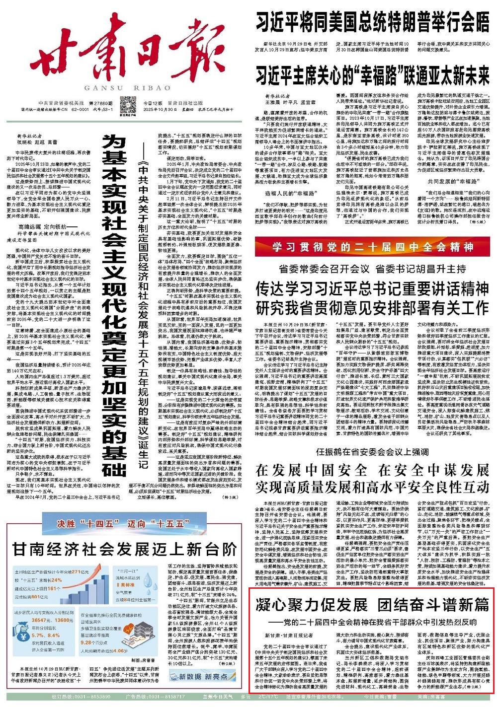 《甘肅日?qǐng)?bào)》2025年10月30日 第1版