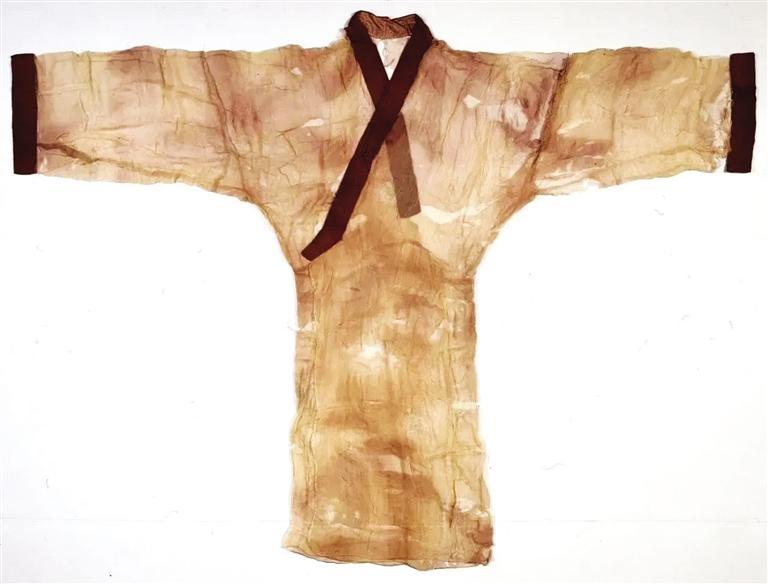 值得一提的是,在馬王堆漢墓出土的文物中,最受矚目的是做工精細(xì)和舉世聞名的素紗單衣,該件傳世珍寶僅重49克,相當(dāng)于一個(gè)普通雞蛋的重量,乃西漢時(shí)期紡織巔峰之作。素紗單衣衣長(zhǎng)128厘米,通袖長(zhǎng)190厘米。右衽直裾,重49克。漢代文獻(xiàn)描述其薄如蟬翼,輕若云霧。