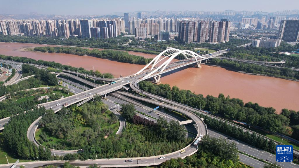 這是黃河蘭州段的雁灘黃河大橋(9月24日攝,無人機照片)。新華社記者陳斌攝