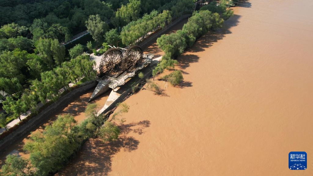 這是位于蘭州市城關區(qū)的蘭州水車博覽園內(nèi)的水車(9月24日攝,無人機照片)。新華社記者陳斌攝