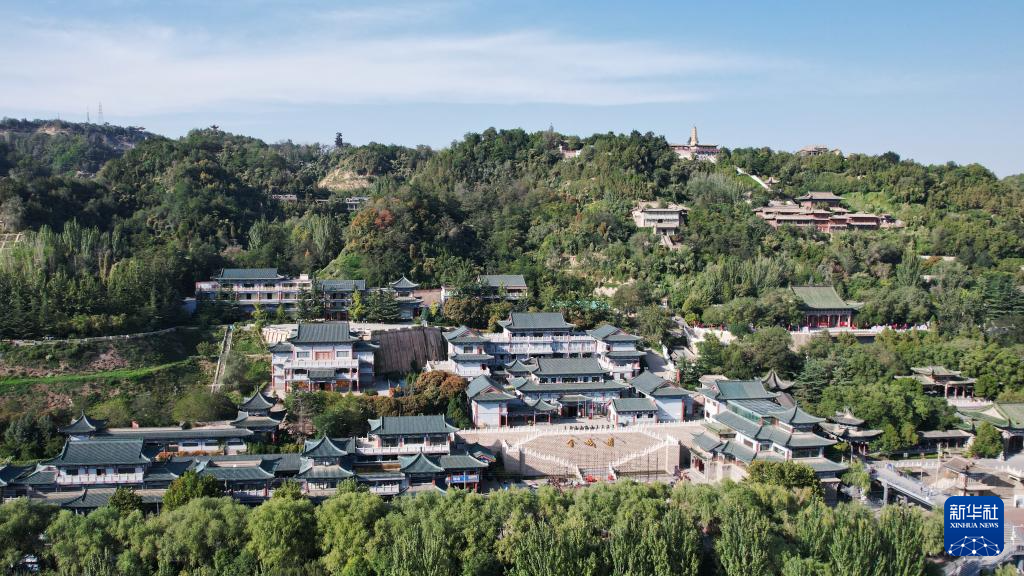 這是坐落于黃河蘭州段北岸白塔山西麓的蘭州碑林(9月23日攝,無人機照片)。新華社記者陳斌攝
