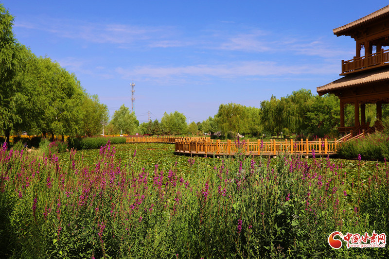 7月8日,雨后的臨澤小城初晴,天空湛藍(lán)。棗鄉(xiāng)風(fēng)情園的睡蓮池畔,成為市民和游客的熱門去處。古亭倒影在平靜的池水中,與盛開的睡蓮相映成趣。市民游客坐在池邊長(zhǎng)椅上閑聊,鍛煉的人們也沉浸在這愜意的氛圍中。