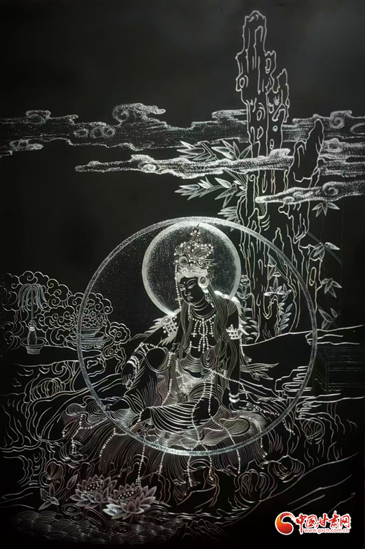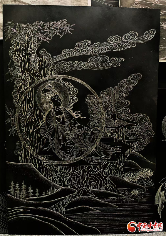 對(duì)張兆武來(lái)說(shuō),做鍥金畫從來(lái)不是“照貓畫虎”。他琢磨傳統(tǒng)書畫的筆墨、篆刻的力道,慢慢攢出了自己的一套刀法;創(chuàng)作時(shí),心里裝的也全是敦煌——從莫高窟第112窟里“反彈琵琶”的靈動(dòng)舞姿,到傳說(shuō)中“九色神鹿”的溫潤(rùn)模樣,都成了他刻刀下的主角。他刻出的飛天,飄帶像帶著風(fēng);刻出的菩薩,眉眼間透著莊重;金屬的光澤在畫面上流轉(zhuǎn),明明是靜態(tài)的畫,卻像在講一段活的敦煌故事。“不用多說(shuō)什么,看過(guò)的人能懂這份美。”張兆武說(shuō)的這份“懂”,恰恰打破了文化和語(yǔ)言的距離,讓東方的古老美學(xué),和全世界的現(xiàn)代審美碰出了共鳴。
