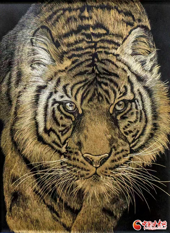 談起自己堅(jiān)守多年的手藝,張兆武曾這樣向大家解釋:“很多人好奇‘鍥金畫’到底是怎么做的,其實(shí)核心就是‘以刀為筆’。我們用特制的鋼刀,在處理好的底板上一點(diǎn)一點(diǎn)刻,要經(jīng)過(guò)‘繪、鍥、爍、凝’四步,才能把金屬的亮澤和線條的勁兒揉到一起。”這門手藝的根能追溯到青銅器時(shí)期,過(guò)去常用在佛教法器、宮廷裝飾上,和敦煌石窟藝術(shù)的輝煌年代一路相伴,藏著“尊貴”與“長(zhǎng)久”的意涵。