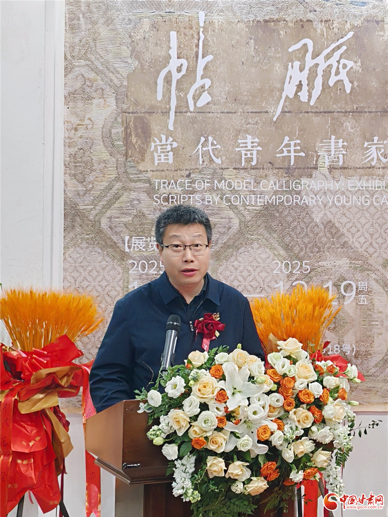 12月14日上午,“帖脈溯望——當(dāng)代青年書家行草作品展”在甘肅美術(shù)館開幕。中國書法家協(xié)會(huì)理事、甘肅省文聯(lián)黨組成員、副主席陳新長在開幕式致辭中表示,河北美術(shù)學(xué)院七位青年教師的作品展,以九零后的視角重新解讀二王法脈、唐草風(fēng)神與晚明意趣,作品既有晉唐筆法的精微細(xì)膩,又有當(dāng)代審美的開闊格局。