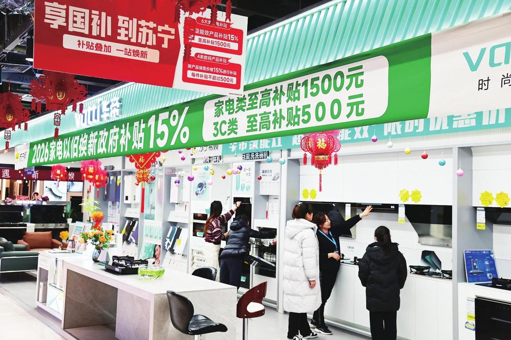 大寒節(jié)氣剛過,蘭州西關(guān)商圈的蘇寧易購(gòu)超級(jí)體驗(yàn)店內(nèi)已是暖意融融。蘭州市民張欣麗盯著一款海信電視的價(jià)格標(biāo)簽感慨:“這款85英寸的電視機(jī)原價(jià)7411元,疊加國(guó)補(bǔ)、門店優(yōu)惠后,到手6299元,這波福利太實(shí)在了。”她果斷下單的背后,是2026年“新國(guó)補(bǔ)”政策在甘肅落地后,消費(fèi)熱潮涌動(dòng)的一個(gè)縮影。