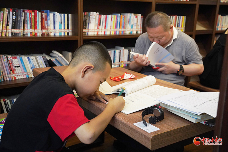 我們到達(dá)書屋時正是中午,盡管外面是灼灼烈日,里面卻清涼而寧靜。書屋里坐滿了人,有頭發(fā)花白的老先生,也有七八歲的稚童,四處都彌漫著書香和濃厚的讀書氛圍。