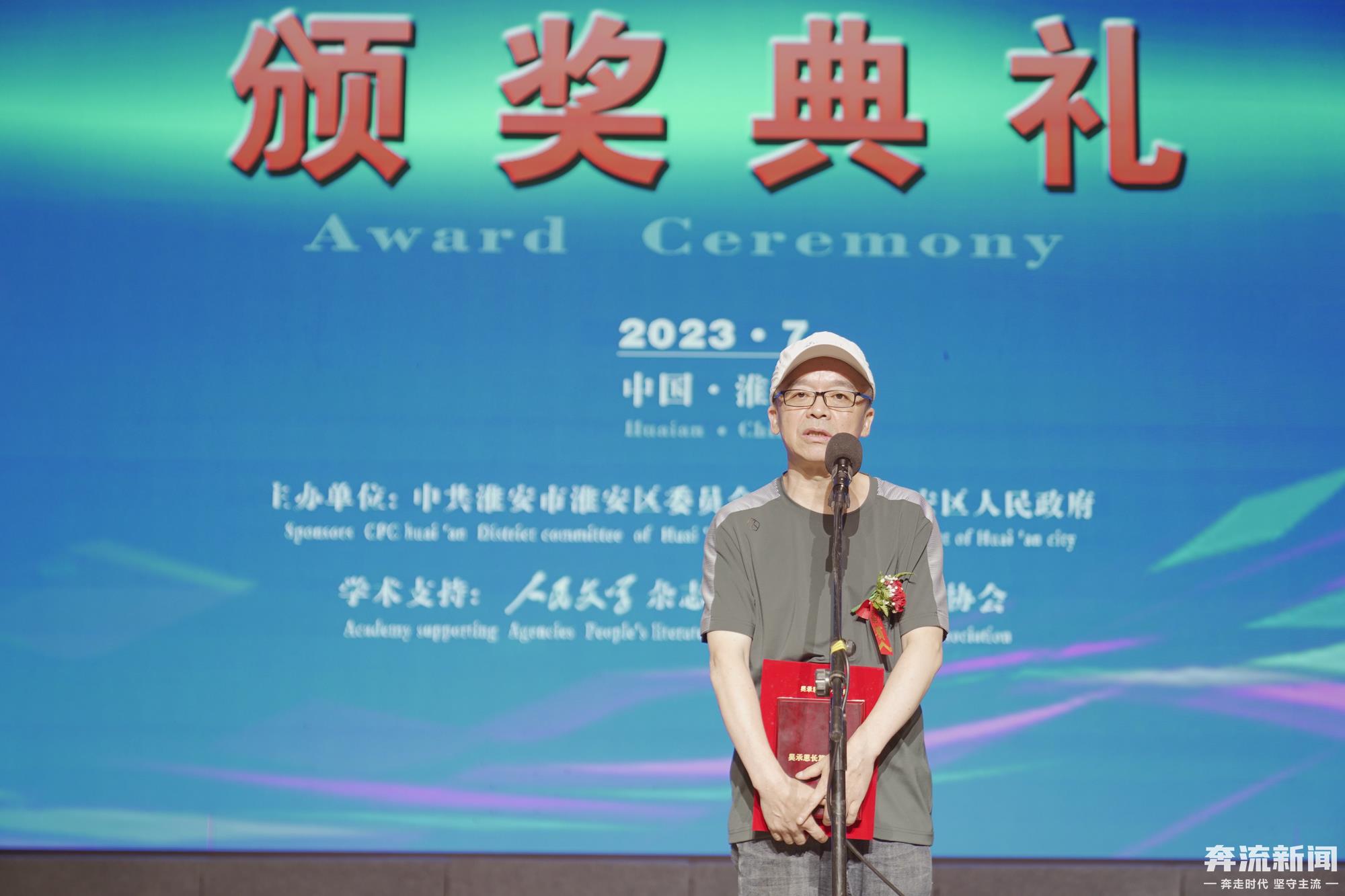 奔流新聞淮安訊(記者師天銘)7月23日,第四屆吳承恩長(zhǎng)篇小說(shuō)獎(jiǎng)?lì)C獎(jiǎng)典禮在江蘇省淮安市淮安區(qū)舉行,著名作家葉舟長(zhǎng)篇小說(shuō)《涼州十八拍》獲獎(jiǎng)。中國(guó)作家協(xié)會(huì)黨組成員、副主席、書(shū)記處書(shū)記吳義勤,中國(guó)作協(xié)黨組成員、書(shū)記處書(shū)記、《人民文學(xué)》雜志社主編施戰(zhàn)軍及本屆獲獎(jiǎng)作家等出席頒獎(jiǎng)典禮。