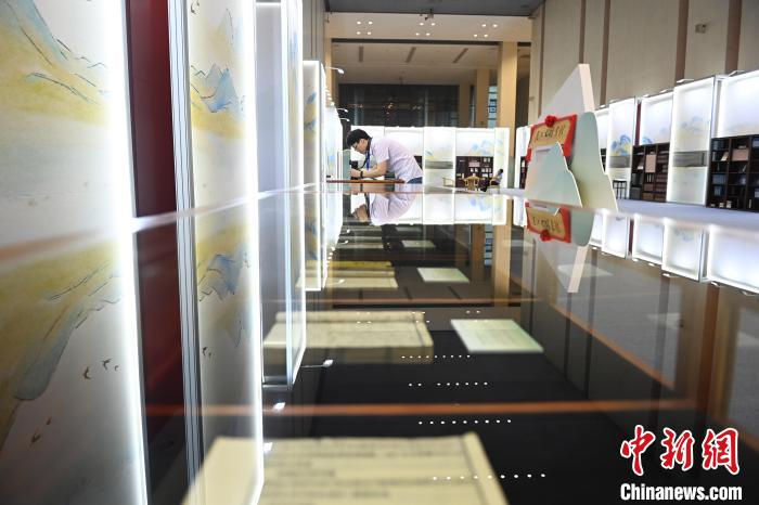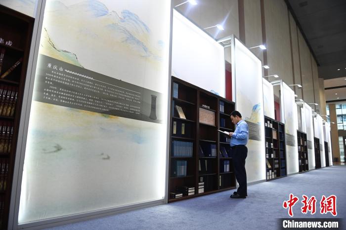 9月12日,長江文明書館在重慶設(shè)展陳,圖為展出的古籍。中新網(wǎng)記者 陳超 攝