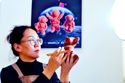 烏海“黃河泥娃”傳承人張勇在制作泥娃。光明日?qǐng)?bào)記者 郭俊鋒攝