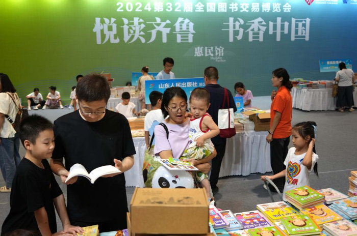7月26日,讀者在第三十二屆全國圖書交易博覽會山東展區(qū)參觀。