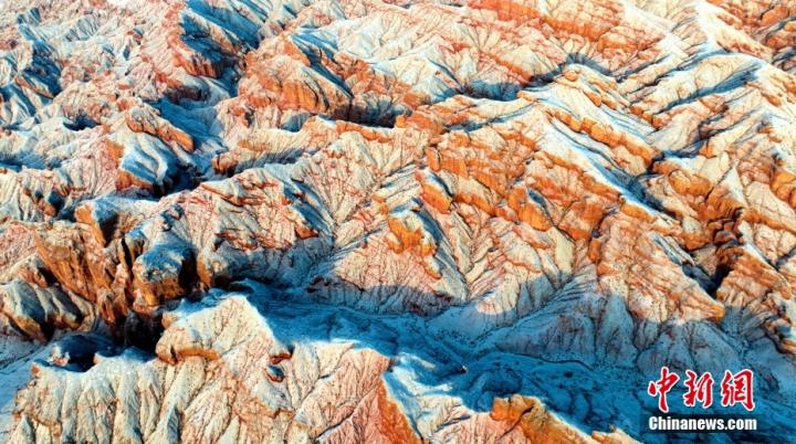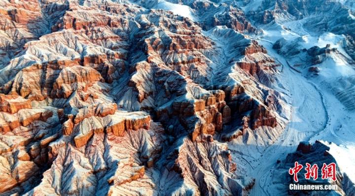 1月24日,雪霽初晴的甘肅省張掖市臨澤縣板橋鎮(zhèn)境內的紅溝丹霞銀裝素裹,雪景如畫。圖/CNSphoto 楊瀟 攝