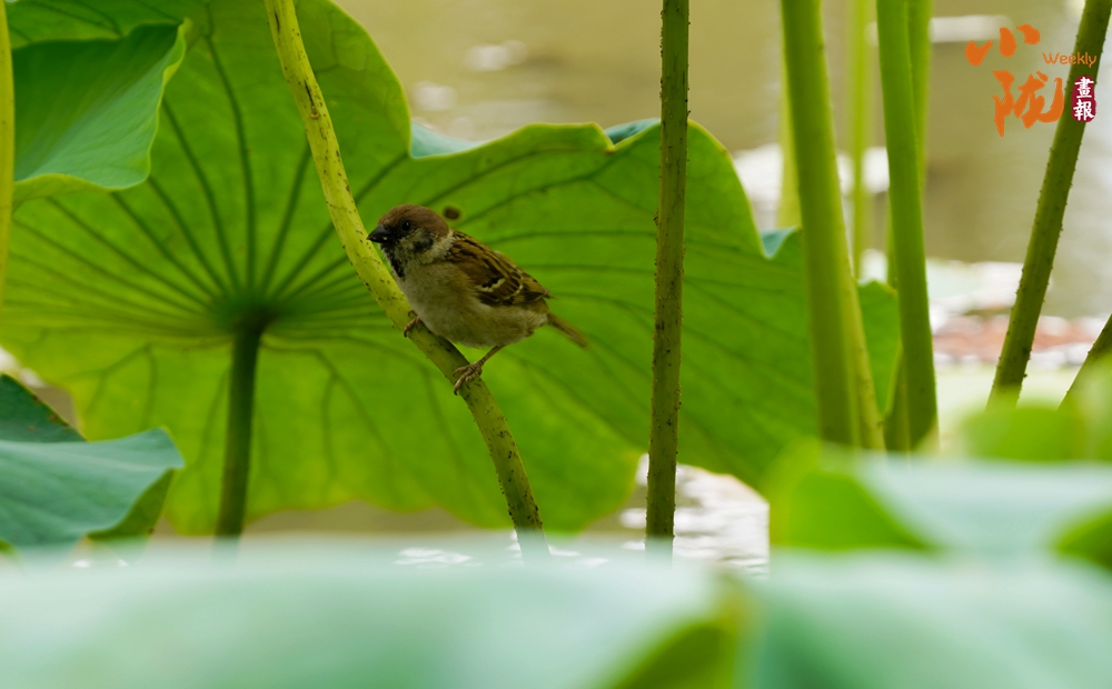 清涼的池水,翠嫩的小荷,乘涼的麻雀,構(gòu)成了一幅夏日幽情逸趣的畫面。