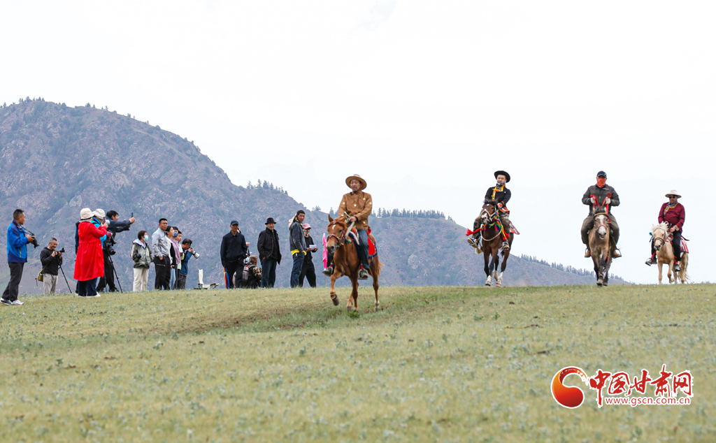 當(dāng)日,肅南裕固族自治縣“相約康樂草原 體驗(yàn)民族風(fēng)情”傳統(tǒng)文化展演活動拉開帷幕,來自肅南縣3個(gè)鄉(xiāng)鎮(zhèn)22個(gè)村的160多名騎手,自發(fā)匯聚于此,展開大馬賽、小馬賽、圓口賽、對牙賽等精彩賽事,將草原的速度與激情演繹得淋漓盡致,吸引了上海、廣東、安徽、福建等地的萬名游客觀賞賽馬和領(lǐng)略雪山、森林、草原為一體的祁連山美麗景色。