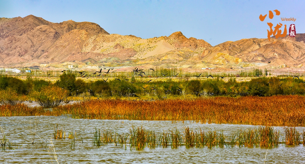 水草搖曳、波光粼粼、候鳥(niǎo)翻飛,湖泊與沙丘共存,藍(lán)天與碧水相接,集大漠戈壁、蘆葦、候鳥(niǎo)、湖泊于一體,構(gòu)成了一道獨(dú)特的自然景觀。