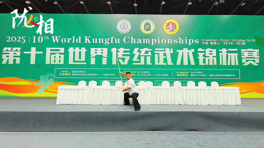 2025年8月,峨眉山第十屆世界傳統(tǒng)武術(shù)錦標(biāo)賽的賽場(chǎng)上,羅榮泉以鞭畫太極陰陽(yáng)圈,腳踏八卦九宮步的獨(dú)特西北風(fēng)格,最終他贏得鞭桿項(xiàng)目冠軍的殊榮。鮮為人知的是,備賽期間他的膝蓋積水已嚴(yán)重到需要每日抽液消腫,“但鞭桿一入手,就忘了疼”。